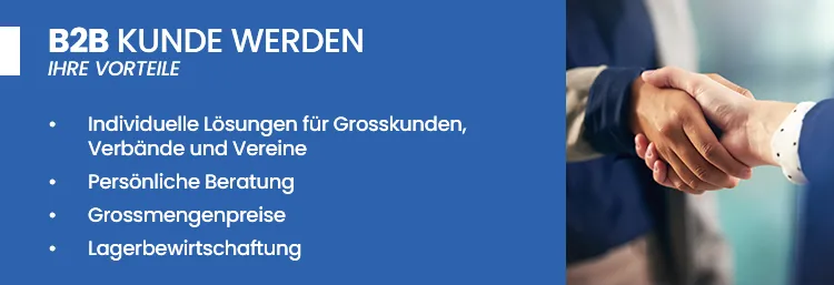 Für unsere B2B Kundschaft bieten wir Grossmengenpreise und Gratislagerung an. Ganz gleichgültig, ob Bürobedarf, Büroeinrichtung, Gastroartikel, Versand oder Handwerk - wir stimmen alles auf Ihre Bedürfnisse ab.