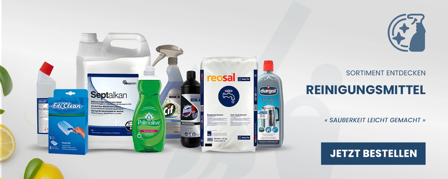 Unser Sortiment umfasst aktuell über 20'000 Produkte und wird stetig erweitert. Neu verkaufen wir ebenso «Green Products» für eine nachhaltigere Zukunft. Wenn Sie bis 16:00 Uhr bestellen, wird die Lagerware bereits am nächsten Tag geliefert. Jede Woche stellen wir neue Angebote und Rabatte für Sie zusammen. Zu unserem Angebot gehören ausserdem personalisierbare Produkte für Ihren Brand. Für Bestellungen ab einem Betrag von CHF 150.– bieten wir gratis Versand an. Neben lokalen, sowie internationalen Marken wird unser Sortiment durch unsere günstigen Eigenmarken (Focus & Edelweiss) ergänzt.